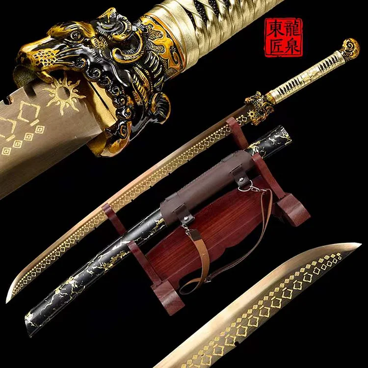 Sword embroidery spring high Meng steel baked gold rotten pattern one hand forging